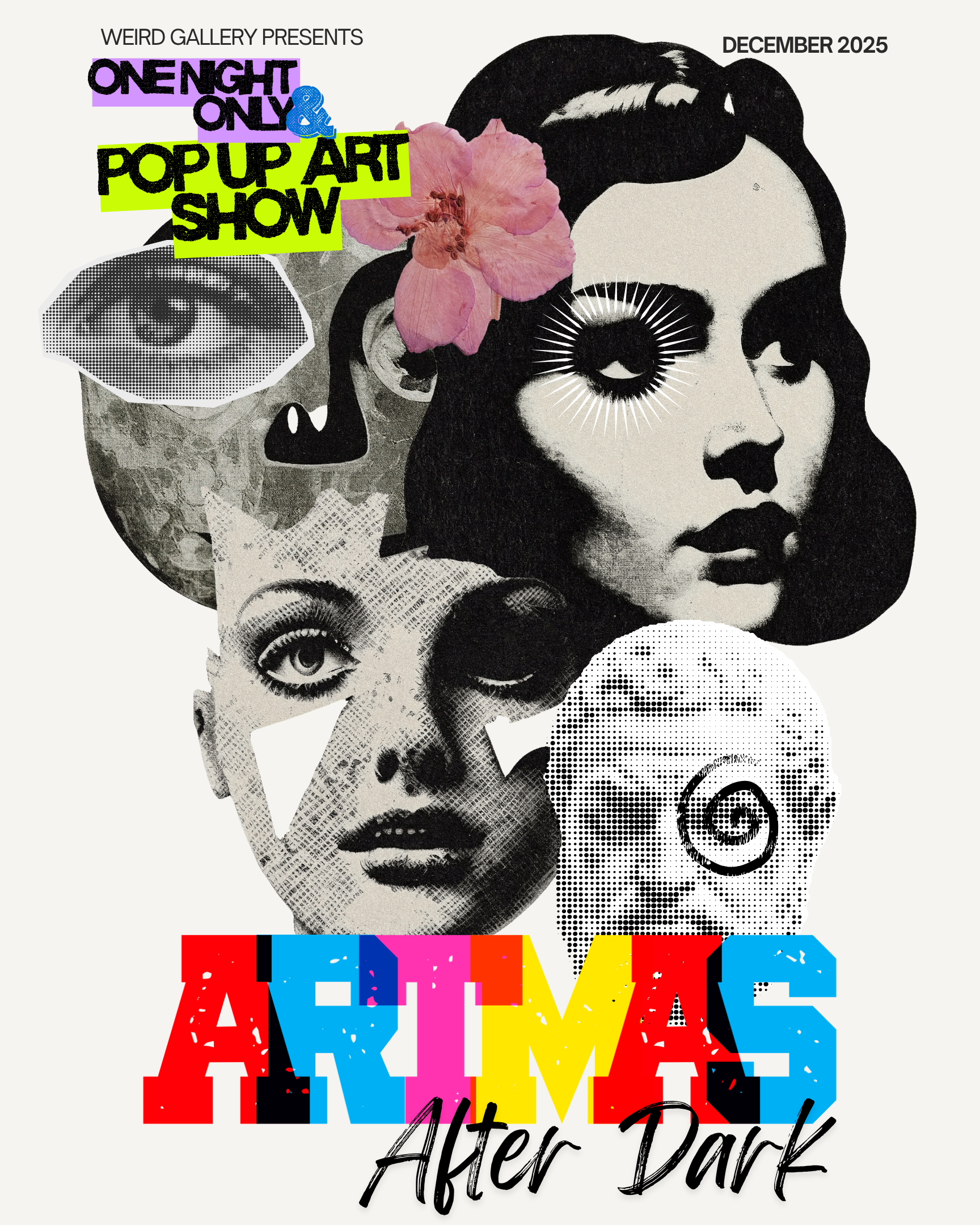 Join us for our upcoming Pop-Up Art Show: After Dark, this December 11, 2025 — a one-night-only experience where art, music, and fashion collide. Step into a world of creativity at Weird Gallery in Newhall, CA, and explore bold visual art, live music performances, immersive installations, and handcrafted works by emerging and established local artists. Discover something new.